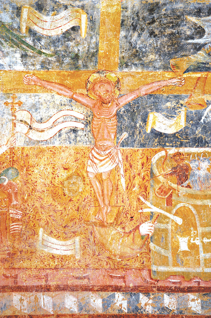 Nedavnim restauracijama otkriveni su ostaci fresaka na svetišnom zidu. Koloritom se razlikuju od onih Živog križa, što upućuje na to da je boje izblijedjelo vrijeme ili pak restauratorski zahvati. U novootkrivenom fragmentu možemo iščitati scenu Judinog poljupca. Lice sv. Petra karakteristične frizure s tonzurom, oblikovanjem očiju i krupnim, markantnim nosom, usporedivo je s onim apostola unutar apside u Butonigi. Uz već uočenu sličnost patroniranih uzoraka, potvrđuje nam povezanost ovih ciklusa.