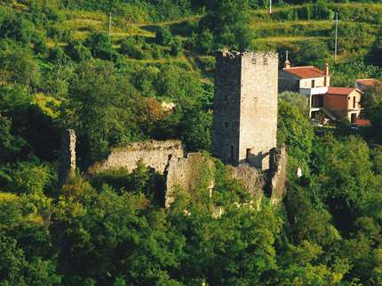 Le château de Momjan, aujourd'hui dévasté et envahi de lierre il peut difficilement nous faire imaginer la puissance et la richesse de son passé. Il se trouve dans la vallée de la rivière de Dragonja qui aujourd'hui représente la frontière entre la Croatie et la Slovénie. Situé à 280 mètres d'altitude au dessus du niveau de la mer il domine la vallée de Dragonja dont il est séparé par le ruisseau Poganja. Momjan est mentionné pour la première fois en 1035, et en 1102 il est offert au Patriarche d'Aquilée. La construction de la forteresse commence dans le première moitié du 13ème siècle lorsque le Patriarche concède Momjan aux comtes Devinski. Les propriétaires de Momjan, la famille Woscalc Devinski et ses fils, étaient connus pour leur versatilité et leur sentiment d'appartenance en fonction de leur intérêts. Cette caractéristique s'adaptait très bien à leur désir inépuisable de fonctions politiques, ils étaient connus aussi pour leurs différends et leurs conflits avec le voisinage. Ils ont souvent combattu et changé de camp entre les comtes de Gorica et les patriarches d'Aquilée, en luttant un peu pour les uns et un peu pour les autres. Telle une ville maudite, elle a constamment changé de propriétaire, été mise en gage, restituée, mais elle est toujours restée aussi importante et réputée, c'est pourquoi durant les décennies qui suivirent elle fût gérée par les Gouverneurs Pietrapelosa et les comtes de Gorica. Le château a été acheté en 1548 par Simon de Rota, membre de la famille Rota de Bergame, qui peu de temps avant l'achat s'était installée à Piran. Rota a reconstruit le château dans une forme trapézoïdale avec une tour carrée, il a restauré les pièces à vivre, construit la chapelle de Saint- Etienne et le nouveau pont de pierre. Jusqu'à son abandon en 1835 le château avait une fonction résidentielle, puis les comtes de Rota l'ont quitté pour s'installer dans un palais plus confortable dans le village. Compte tenu que pendant longtemps les château a été la propriété de la famille Rota, celui-ci est aussi connu sur le nom de château Rota. Aujourd'hui il ne reste de son glorieux passé que des ruines.