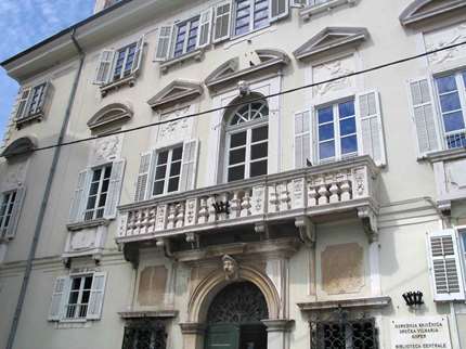 La bibliothèque centrale de Kopar se trouve dans le palais Brutti à la façade datant de la fin du baroque avec une entrée et un escalier magnifiques.