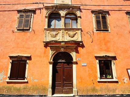 L'hôtel de ville du comte Rigo, à Novigrad, est un exemple exceptionnel de l'architecture résidentielle baroque. Même s'il est petit, le palais de part sa forme est extrêmement intéressant. Cette construction opulente date de 1770 et de nos jours en plus de la façade, l'organisation d'origine de l'espace intérieur a été aussi partiellement conservée. L'entrée centrale, au rez-de-chaussée, mène au hall d'entrée par lequel on accède au premier étage. A gauche et à droite il y avait, comme aujourd'hui, des magasins, dont l'un d'entre eux a laissé sa place à la petite galerie artistique d'avant garde, la Galerie Rigo. Le cube solide du palais est divisé sur la façade par des éléments décoratifs harmonieux, comme l'on en voit pas sur les palais d'Istrie de cette même époque. Les éléments architecturaux sculptés ont des lignes courbées et souples, ce qui est le signe du gothique tardif ou du Rococo. Le bâtiment est également un exemple du baroque d'Europe Centrale, qui en passant par Trieste a atteint l'Istrie.