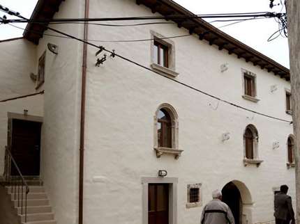 Le bâtiment gothique se situe dans le coin sud de la place, possède des fenêtres avec des arcs typiques gothique pointus. Sa façade a été restaurée au 19ème siècle au même moment où l'on a remplacé le linteau principal. L'ancien linteau incrusté dans le