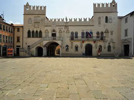 La place centrale municipale, anciennement le Platea Comunis, puis place Stol, et finalement place de Tito, est entourée des bâtiments les plus importants et les plus riches en histoire de la ville. En face des loges de la ville, au sud de la place, se trouve le palais Prétorien, l'un des bâtiments laïc les plus importants de la ville, ayant eu une histoire architecturale exceptionnelle du 13ème au 17ème siècle. Le palais Prétorien a été construit à l'emplacement de deux anciennes maisons, datant de la moitié du 13ème siècle, qui étaient tout d'abord reliées au loges de la ville, puis dans la deuxième moitié de ce même siècle, le bâtiment a été reconstruit à de nombreuses reprises, plus particulièrement à cause des dommages causés lors des attaques de Gênes. Au final, l'aspect actuel avec ses deux étages, ses escaliers extérieurs et ses deux tours, l'une sur l'aile est et l'autre sur l'aile ouest, date de la seconde moitié du 15ème siècle. Les styles gothique tardif-renaissance et gothique vénitien dominent, ce qui classe cet édifice au sommet de l'architecture Slovène laïque. Sa façade imposante est composée d'une rangée de fenêtres, bifores, trifores et tétrastyles, des escaliers déjà évoqués et du balcon au dessus du portail semi-circulaire avec ses deux colonnes. Le portail renaissance date de 1505. Son dernier aspect date de l'époque baroque, lorsqu'on lui ajoute une extrémité cannelée saisissante en 1664, ainsi que des emblèmes décoratives sur la façade. Au coin de la façade, se trouve un relief en forme de lion avec une ouverture, ou plus précisément "la Bocca del leone". Cette ouverture était utilisée à l'époque vénitienne pour les messages anonymes aux gestionnaires de Kopar. A la chute de Venise, en 1797,le palais Prétorien perd de son importance et lors du règne Autrichien toutes les fonctions qui s'y exerçaient sont transférées à Arméria. Ce bâtiment a été ensuite ignoré jusqu'en 2001, à cette date il a été restauré et la mairie a de nouveau repris sa place au sein du palais Prétorien.