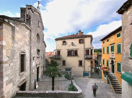 Le palais Gothique-Renaissance Scampicchio appartenait à la famille du même nom, qui a construit le palais au 15ème siècle et qui, avec le consentement du Pape, a relié le palais à l'église et obtenu son entrée privée.