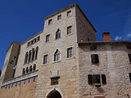 Bale est une toute petite ville qui se trouve à quelques kilomètres de la mer, située sur une petite colline élevée sur une vaste plaine. La structure urbaine dense, avec ses rues radiales et concentrées, est imbriquée intra-muros ainsi que la tour faisant partie auparavant du système défensif. Le palais Soardo a été construit derrière la porte de la ville entre deux tours défensives, par la suite il a été repris par la famille Bembo, le palais a donc ensuite obtenu le nom de Soardo-Bembo. Le palais Soardo-Bembo est le bâtiment le plus imposant de Bale et il attire l'attention des passants par la beauté de sa façade Gotique Renaissance qui a été restaurée il y a peu de temps. Sa façade monumentale est dirigée vers l'ouest avec deux larges tétrastyles, quatre fenêtres séparées par de petites colonnes, et sur les côtés se trouvent de fenêtres gothiques plus simples. Cette masse murale fermée, sa simplicité et l'absence de détails sculptés ont amenés les experts à penser que cette façade date du 14ème siècle, cependant, le bâtiment a été construit au début du 16ème siècle. Au cours des siècles le palais a changé de fonctions et de propriétaires, les plus anciennes armoiries appartiennent à la famille Nadal, qui en a eu la gestion de 1400 à 1470. Au 15ème siècle il change de fonction ; de fortification ayant une fonction défensive, il devient un imposant bâtiment résidentiel. Le siècle suivant la famille Bembo devient propriétaire du château et elle y organise de nombreux évènements sociaux. L'extérieur du château Soardo-Bembo a été récemment restauré, à cette occasion les fenêtres d'origines qui étaient murées sur les tours latérales ont été ouvertes, et aujourd'hui dans le palais la communauté italienne dispose de pièces aménagées pour leurs besoins.