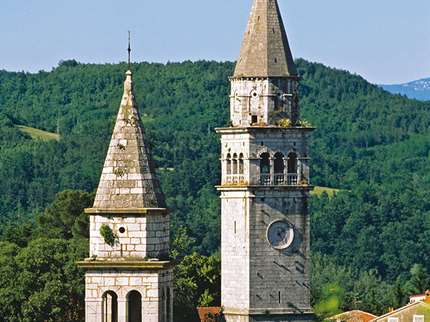 L'église de Saint-Nicolas se trouve dans le centre de Pazin. La route y menant est marquée d'une signalisation marron qui vaut la peine d'être suivie.