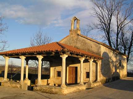 L'église de Saint-Roch éloignée que de quelques pas de l'aire de repos d'Oprtalj avec une belle vue panoramique.