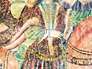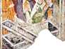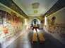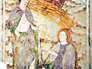 Sur les fresques de l'église de Sainte-Hélène s'imbriquent des thèmes profanes et chrétiens et le long du cycle christologique apparaissent aussi des images des fables d'Esope.