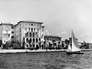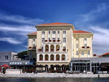 Au bout de la péninsule de Porec se trouve l'hôtel Palazzo, qui est aussi le plus ancien hôtel de Porec. Son nom original était Palace, il a été la propriété de Österreichische Riviera et de l'autrichien Friedrich Klein qui l'a fait construire. L'hôtel a été construit sur une butte maritime artificielle et a été ouvert en 1910, information qui a été enregistrée dans le quotidien de Pula de l'époque Polaer Tagblatt. Pendant la Seconde Guerre mondiale, l'hôtel a malheureusement été bombardé trois fois, mais on a commencé sa reconstruction déjà en 1948. Il a rouvert ses portes en 1953. Cette année là, l'hôtel a changé son nom en Riviera, avec une capacité de 198 lits. Le bâtiment a pendant une période été fermé et négligé. Après la fin de la guerre de l'indépendance, il a été vendu à un propriétaire privé qui n'a pas eu le droit d'utiliser le nom de Riviera, de ce fait lui a donné le nom de Palazzo. L'hôtel a alors été soigneusement rénové et restauré et à retrouvé sa splendeur d'origine.