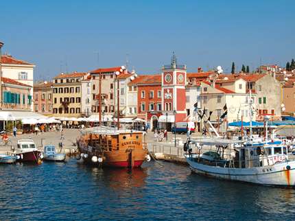 Glavni gradski trg izvan je obrisa srednjovjekovnog grada, a na njemu se uz toranj sa satom ističe barokna palača obitelji Califfi s početka 18. stoljeća u kojoj je danas smješten Zavičajni muzej Grada Rovinja.